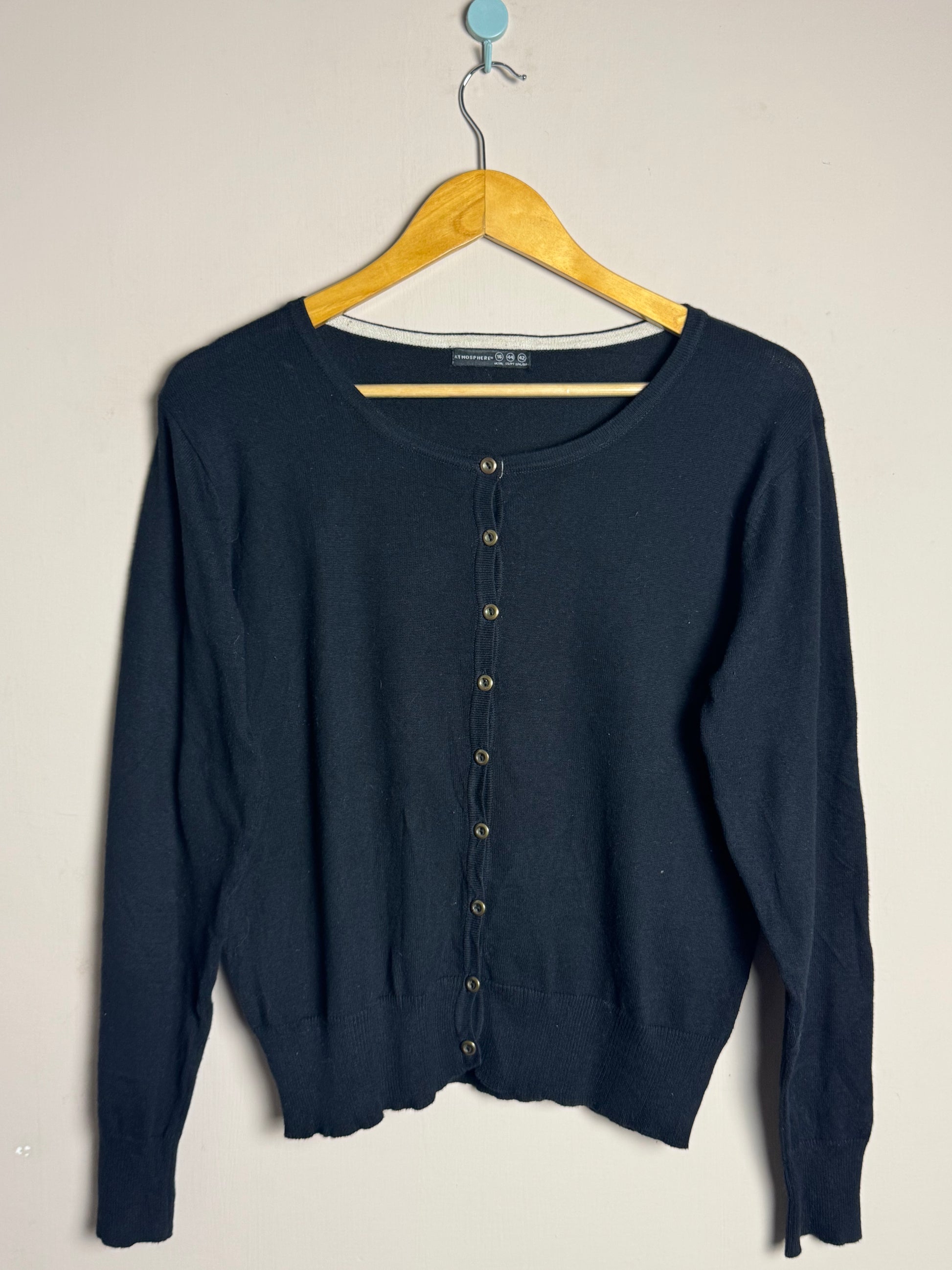 Description: Simple black button sweater with a clean and versatile look.