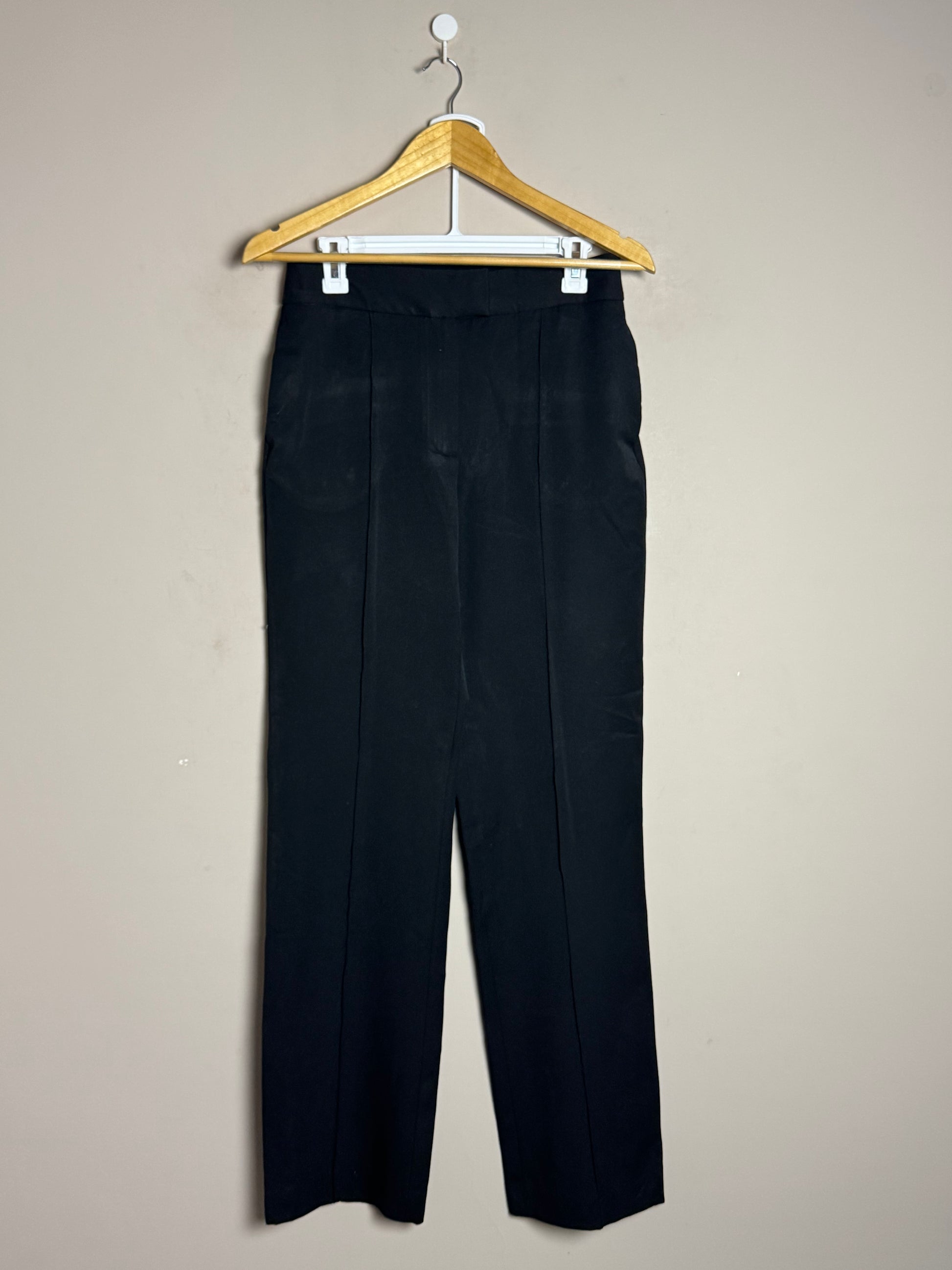 Description: Sleek black straight-fit formal pants with a structured silhouette, ideal for professional and evening wear. Tailored from smooth fabric for a polished finish.
